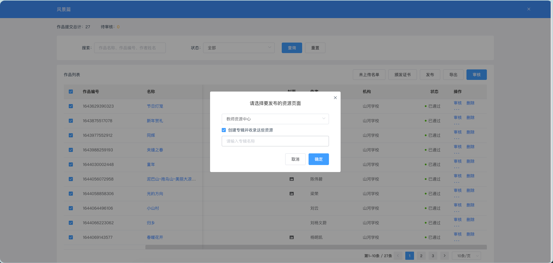 优秀参赛作品可一键推送到资源中心进行共享和宣传;支持自动生成电子版获奖证书,提高赛事活动的效率和影响力。