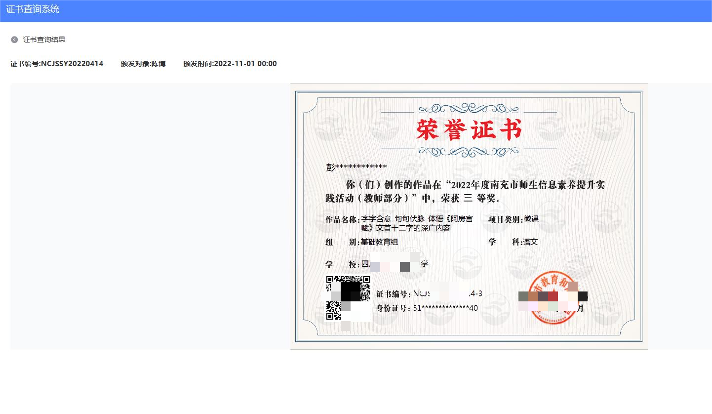 为每张电子证书生成专属的二维码或数字签名防伪标识,支持外部机构或个人通过平台验真查询,确保证书的权威性和不可篡改性。