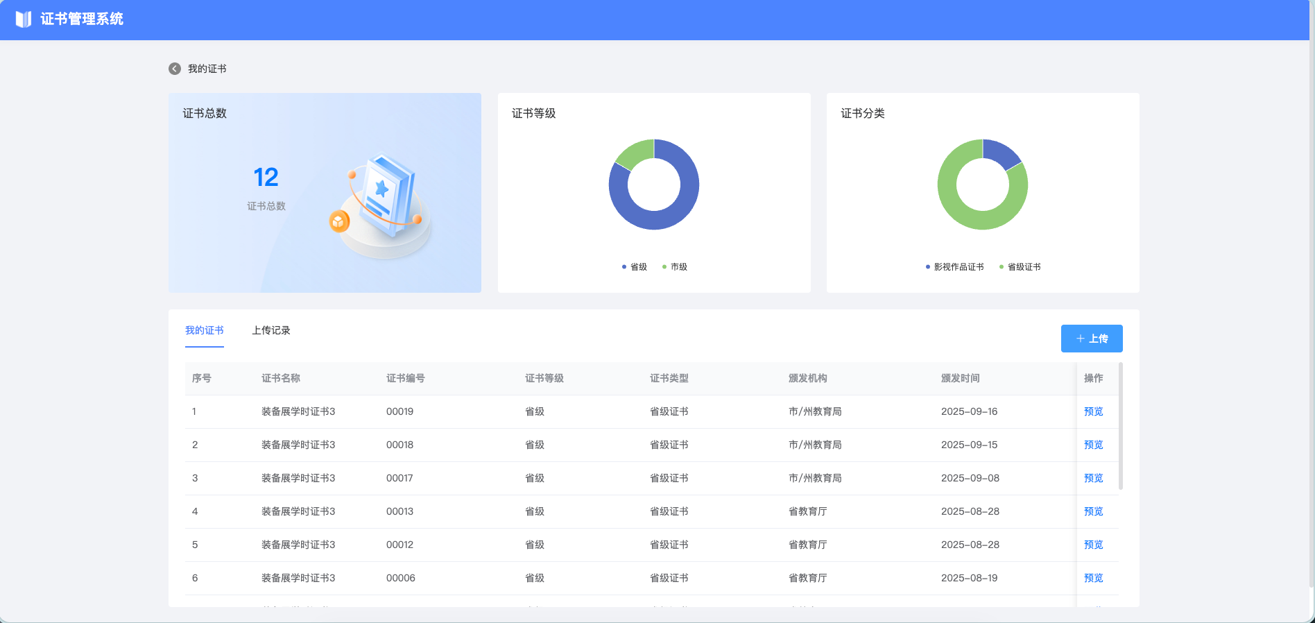 系统根据活动结果、培训名单或考试成绩,自动批量导入数据并生成带唯一标识的证书,支持一键分发至用户的平台账户。