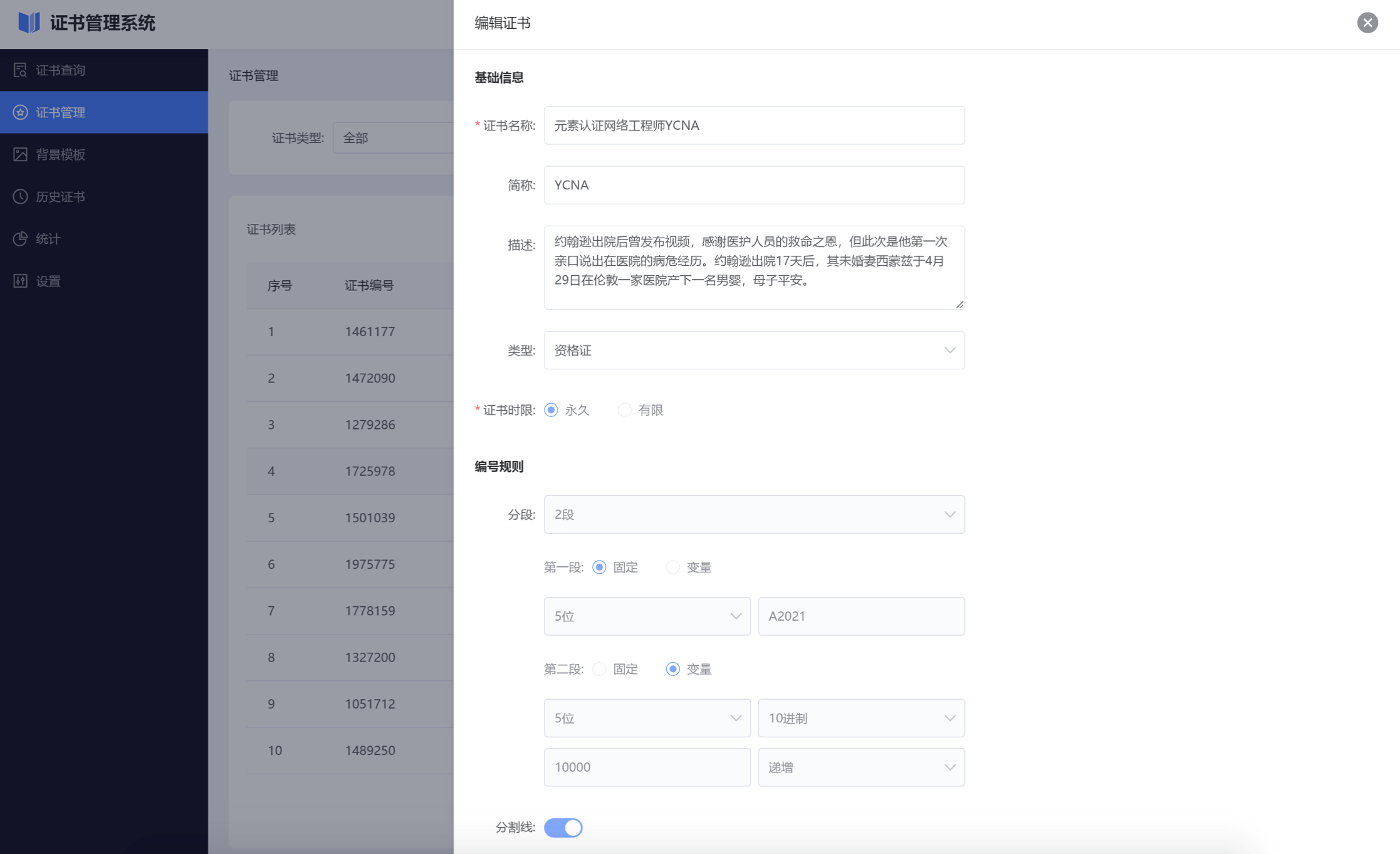 提供可视化的证书模板设计器,支持自定义样式、背景图、签章位置和所有数据变量字段(如姓名、奖项、时间),满足不同类型证书的颁发需求。