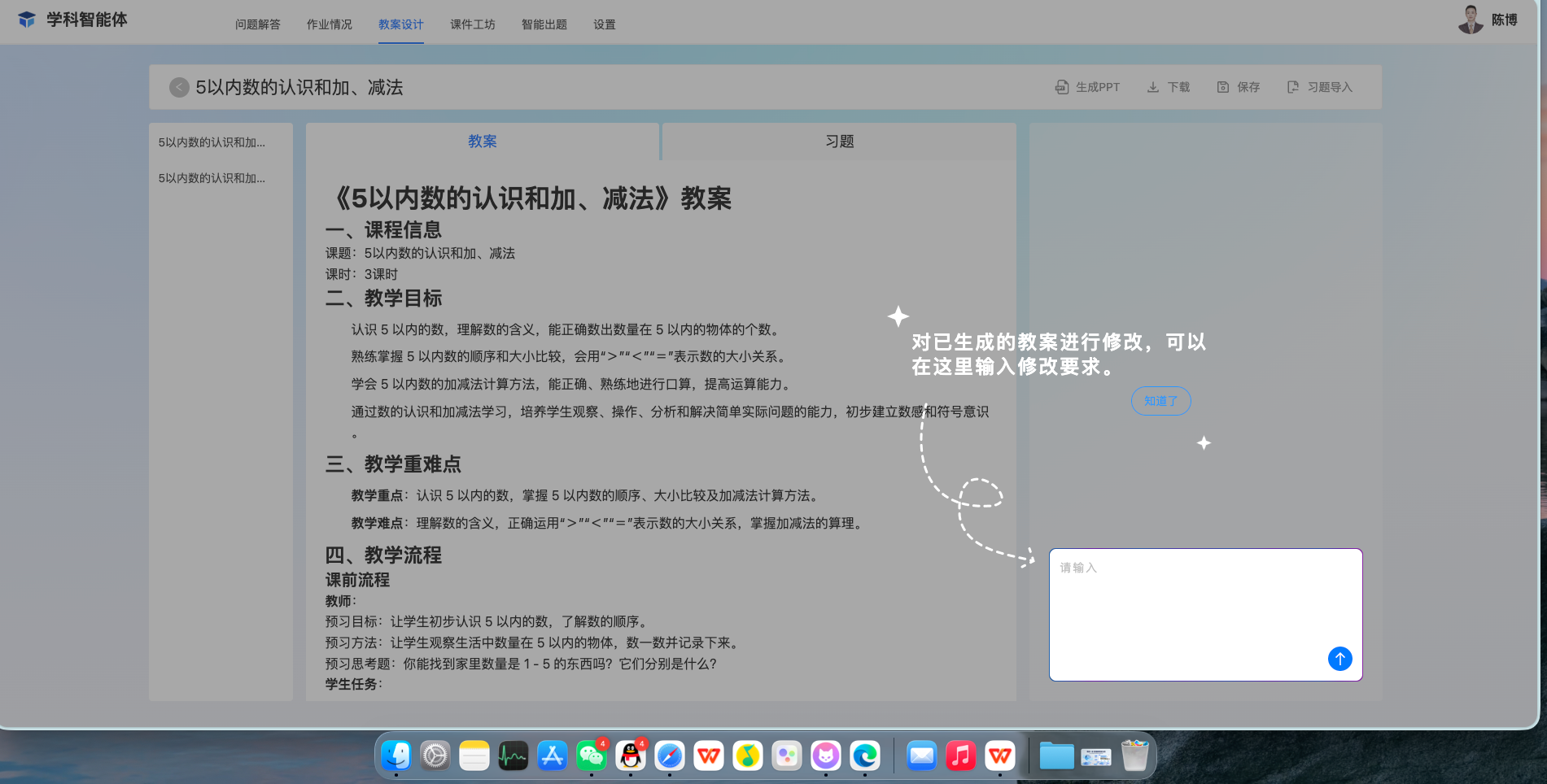 系统集成AI大模型能力,可基于教学目标、学情分析,一键生成教学设计初稿,并智能推荐关联知识点和优质教学资源,大幅提升备课效率。