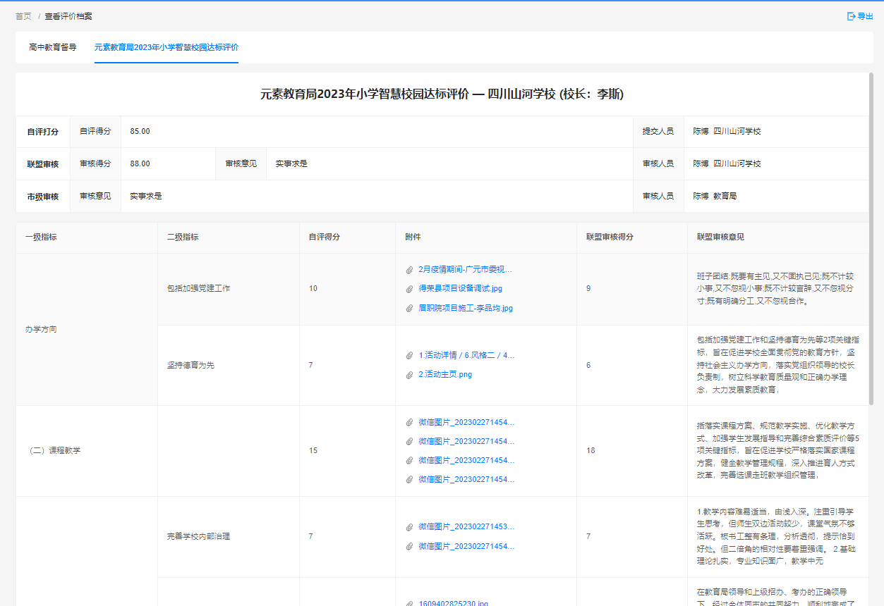支持多级评价指标,评价指标得分支持手动打分和由公式计算得出,可完全满足教育局不同阶段对学校的不同督导评价要求。