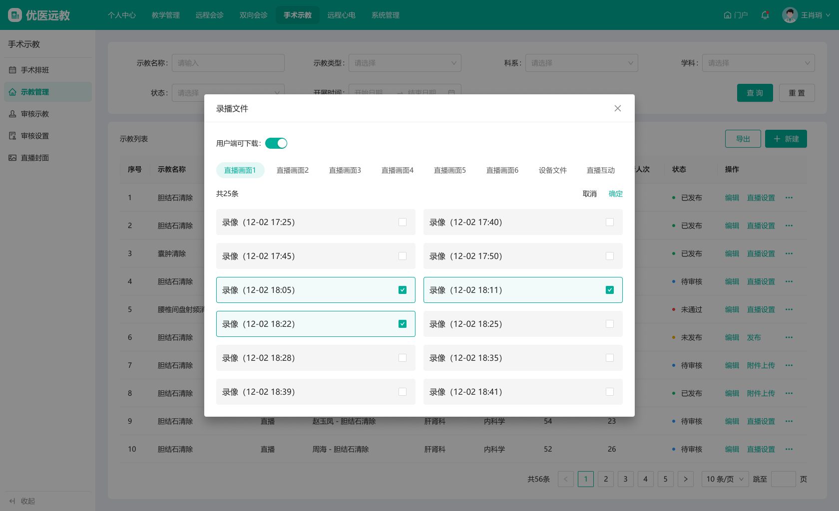 手术全程可一键同步录制,视频自动归档手术活动资源