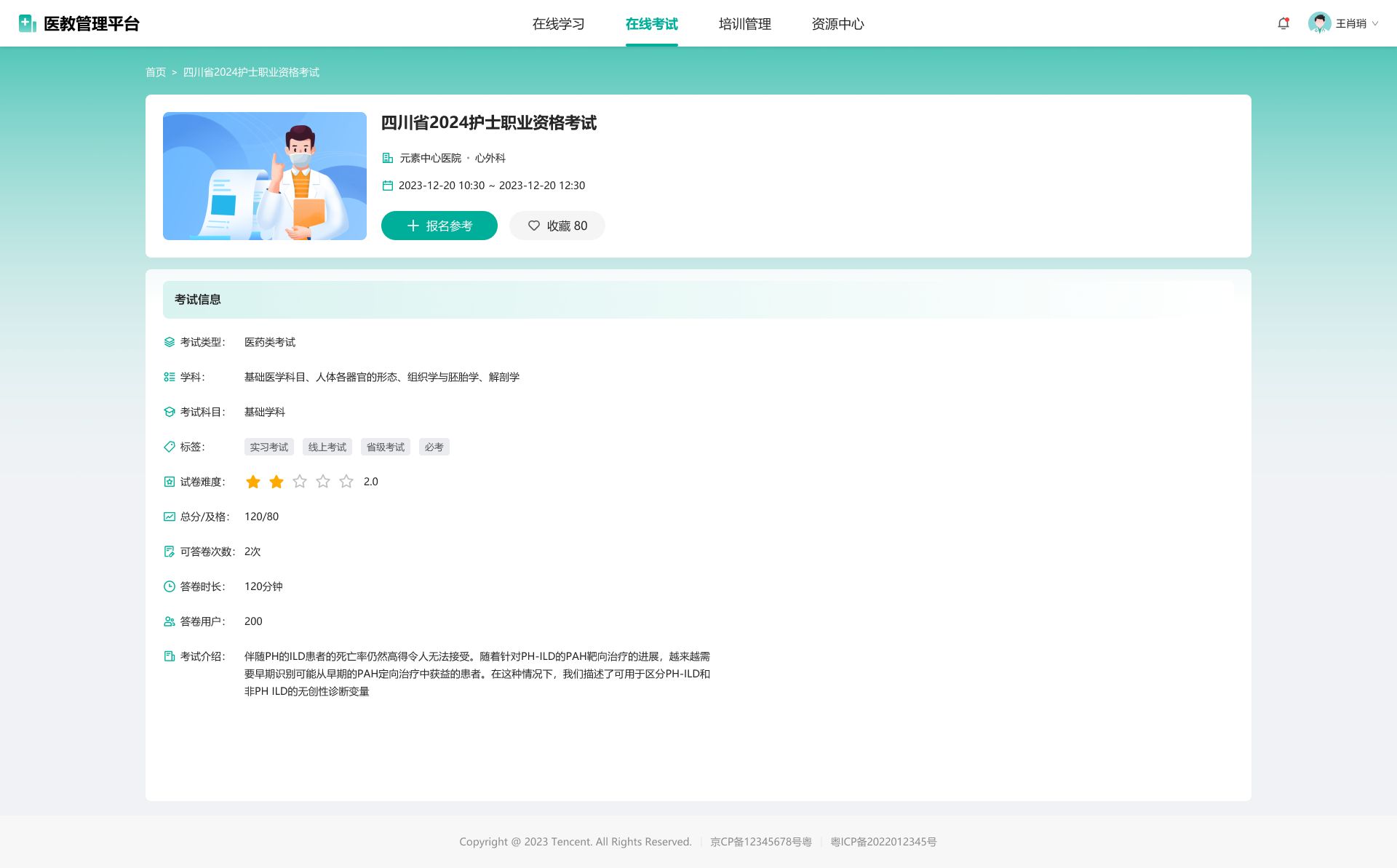 管理员发布考试信息后,学员可收藏考试或一键报名参考